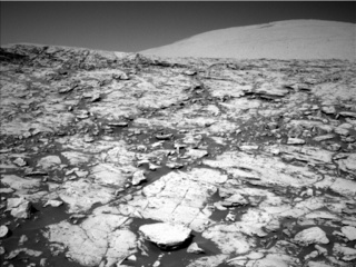 Today was a touch-and-go sol. Contact science was planned on a dark-toned target named "Collingham" in the hopes that the darker color indicated either a different chemistry or reduced surface dust. APXS, MAHLI, ChemCam, and Mastcam will all cooperate on observing this target. Mastcam will continue the Vera Rubin Ridge imaging campaign by capturing a 13x1 mosaic of a prominent outcrop, named "Tra Tra," which is the large outcrop at the top left of the above Navcam image. (Mt. Sharp is to the right.) A stereo image will be taken to ascertain the geometry of the bedding. Curiosity then will drive about 11 meters towards the top of a nearby ridge. Post-drive Navcam imaging will be taken as well as an automated AEGIS imaging activity with ChemCam.