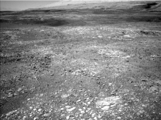 Planning Curiosity's daily activities involves making decisions that impact not only that current day's plan, but also has ripple effects on plans for the next week or even beyond. We had such a decision to make today as some of the most interesting rocks near our planned stop in the Vera Rubin Ridge science campaign were a short distance away. So, we weighed whether to drive a short distance this weekend and study those rocks next week (delaying our existing plans for next week by several days at least), or be content with the rocks we are parked near and drive onward (stopping just left of the small ridge in the foreground at the upper right of this image) to our next destination on the Vera Rubin Ridge. We chose the latter option after determining that these nearby rock targets are sufficiently similar to those a few short meters away and knowing we'll have future opportunities to study some of these bluish-toned rocks at future stops.