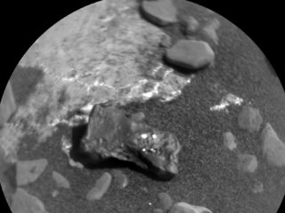 Meanwhile, back on Mars, Curiosity will be driving away from this hard-rock location, with the first drive since Sol 1962, planned to go backwards for 30 meters in a northeasterly direction. Prior to leaving this site, ChemCam and Mastcam will make one more observation each of a meteorite, "Ben Nevis_2." The accompanying image shows the small iron clast with four bright glints, which are sunlight reflections off the metal made bare by previous ChemCam laser shots. Mastcam will also make crater rim extinction and basic tau (atmospheric visibility) observations. After the drive Mastcam, Hazcam, and Navcam will document the new rover surroundings. Navcam will take a zenith movie and a 360 degree observation. Mastcam will also take a clast survey image, ChemCam will take an RMI mosaic of the Yardang portion of Mt. Sharp, and will use AEGIS software to select an outcrop target near the rover for chemical analysis. DAN, MARDI, RAD, and REMS will also take data.
