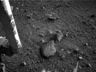 the cobble behind it, named "Arrochar." After the DRT is finished brushing, MAHLI will acquire full suites of images of one of the brushed spots and of Arrochar, as well as a mosaic of images from 5 cm above the APXS raster spots and context images from 25 cm. Then APXS will go to work on Waternish, followed by placement on Arrochar for an overnight integration. This complex set of arm activities took longer than usual to plan, but should provide a rich dataset.