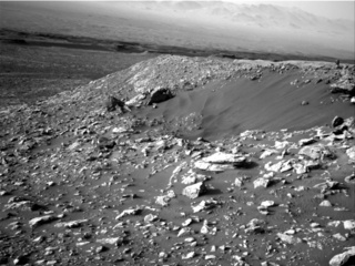 Until then, the science team is keeping Curiosity busy with additional measurements to better interpret the local and regional geology. In today's two-sol plan, Curiosity will begin with a 1 hour and 40 minute science block dedicated to studying the exposed rocky material in front of the rover. The science block kicks off with ChemCam measurements of surface chemistry using the onboard laser and spectrometers. The targets include "Mesabi," a textured rock towards the left-front wheel, then "Wakemup Bay," which appears to be in-place bedrock, and finally "Midway," a long and narrow rock in front of the rover that has potentially been broken apart by the small impact crater (named "Taconite crater"), to the north of Curiosity. ChemCam's high resolution camera will then be used to image a rock on the western rim of Taconite crater (named "Logan") at very high resolution to see if it shows any interesting features associated with the impact cratering process itself. Mastcam will then be used to image the surrounding area, including all of the ChemCam targets that were analyzed. In addition, a multispectral image suite will be obtained of Taconite crater's nearby ejecta field, as a way to determine whether the composition of the ejecta blocks are at all variable, which may indicate that the subsurface geologic units differ in composition from those closer to the surface. Stay tuned!