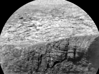 Following some fantastic preliminary imaging from yestersol, today's plan (Sol 2039) is dedicated to additional imaging of "Red Cliff" before continuing to drive toward a location where we think we are likely to drill. We have a short science block to start the day, during which we'll use Mastcam to take some context imaging of our surroundings and upcoming terrain. We'll then use the ChemCam RMI to extend our coverage of Red Cliff, similar to the black and white image above. These RMI images give us a really great opportunity to study small-scale stratigraphic details in rocks that are pretty far away from the rover.