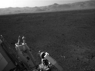 On Earth we have multiple means of communication-cell phone, text messages, land line, e-mail, and good old snail mail. On Mars the rover basically has three-a UHF antenna that communicates with satellites orbiting Mars, a low-gain antenna (LGA) that does not need to be pointed but only handles a low data flow, and a high-gain antenna (HGA) that requires accurate knowledge of Earth's position to receive or send commands directly. The two antennae on the left side of the rover are shown in the image above, taken early in the mission. The LGA is the pointy object near the left, and the HGA is the paddle-shaped object near the center of the image. The UHF antenna (not shown) is a can-shaped object on the back right side of the rover. Over the weekend the HGA was left unavailable to receive commands due to an error during a test, so the team had to do the next best thing yestersol, skipping most of the normal plan in order to reset the HGA-a bit like someone on Earth having to resort to a text message on an intermittent cell connection when an hours-long conversation was desired. As of today, it looks like Curiosity is back on track with normal communications.