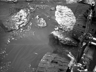 Curiosity pulled away from the "Duluth" site yesterday, but given the blocky nature of the "Blunts Point" member and the sand in between those blocks, she did not get far. The drive stopped after only ~8 m, so the rover planners will give it another try today, slightly rejiggering the drive planned yesterday to move among the rocks on the slope back up to the top of the "Vera Rubin Ridge." The rover was left perched a bit awkwardly on a loose rock and some sand, so contact science was not possible before the drive. Instead, we shot "Ambridge" with ChemCam, a rock broken by the wheels on our drive down to Duluth. We previously acquired a Mastcam multispectral observation on Ambridge from our Duluth parking position; the new ChemCam data will complement the Mastcam data nicely. After the drive, ChemCam will shoot a target autonomously-selected by the AEGIS system. We dedicated a lot of time in the plan to imaging the sky to keep tabs on the ever-changing conditions wrought on us by the current dust storm. In the morning, mid-afternoon and late afternoon, Mastcam will acquire images to measure atmospheric opacity, looking for changes over just a few hours. Navcam will acquire an image to measure atmospheric opacity, and a movie looking for dust devils. Regular REMS and RAD, and both DAN passive and post-drive DAN active measurements round out the activities for the sol.