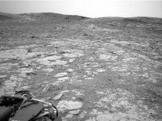 After a steep drive Sol 2094, Curiosity is back over the crest of Vera Rubin Ridge and enjoying the view of flatter terrain ahead. I was the SOWG Chair on this late slide sol, which means that we started planning 3.5 hours later than usual. Everything was going smoothly and we were excited to plan some potential contact science, until we found a rock under the left front wheel that might make Curiosity unstable during arm activities. So at the last minute we swapped out MAHLI and APXS activities for some additional remote sensing. We still packed a lot of science into the two-sol plan, and we'll have another opportunity to do contact science in the weekend plan.