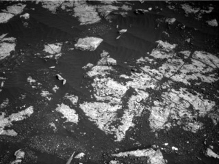 On Sol 2222, Curiosity drove ~10 m towards the "Lake Orcadie" location, in the hopes that we would be able to drill the gray Jura member here. Today's plan is focused on characterizing the target "Highfield," the bright patch of outcrop shown in the middle of the above Navcam image. I was the SOWG Chair today, and it was a pretty straightforward planning day because most of the activities were pre-planned as part of our standard drill site characterization. First APXS will carry out a short integration on the intended drill target, followed by two MAHLI images. Then we'll use the DRT to brush the target, followed by Mastcam imaging and a full suite of MAHLI images. Then we'll do a drill pre-load test, which means that we'll put weight on the drill bit to make sure the surface can support it, and if it makes marks on the surface this might give us an indication of how hard or soft the surface is. Overnight, we'll acquire a longer APXS integration on "Highfield." We were pretty tight on both power and data volume today so it was a bit of a challenge to prioritize everything, but we're optimistic that this will be our chance to sample the gray Jura member. I'll be on duty again tomorrow, so I'm eagerly awaiting our downlink and hoping that we'll be "go" for a full drill hole here!