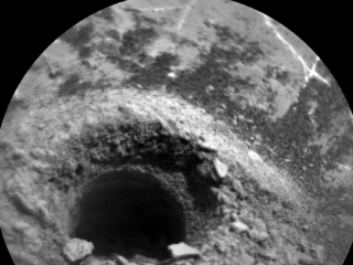 As we enter this weekend thinking about football, raking leaves, and if you're like me, sleeping a bit more, Curiosity will be gearing up for three sols of hard work! The science team will continue to characterize the drilled "Highfield" workspace by using ChemCam LIBS to examine the chemistry of the drill hole, seen in the above RMI image. This observation will supplement the mineralogical data to be obtained from CheMin soon!