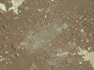 Mastcam Right image of some of the Highfield drill fines that made it onto the ground over the Thanksgiving holiday.