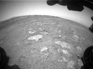 A Front Hazcam image taken on Sol 2282 shows part of the landscape around the rover, including some of the rocks that will be analyzed further with ChemCam.
