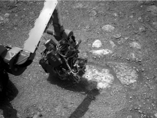 After the science block, we will take a series of images with our MAHLI camera. First, we'll take a 57-frame self portrait (or selfie). Up next for MAHLI is part one of a wheel imaging campaign, which we do periodically to monitor the health of the wheels. We'll take several images today, and more images after we drive later on in the week. Overnight, APXS will perform an analysis on the Rock Hall dump pile. This will be our second observation on the dump pile; our weekend analysis didn't get the entire pile within APXS's field of view.