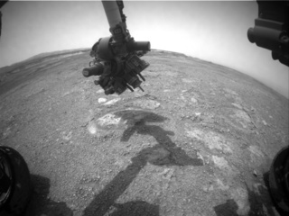 Sometimes the best laid plans of rovers go astray. After wrapping up at the Rock Hall drill site yesterday, the plan was for Curiosity to start driving towards the clay-bearing unit (our first drive in about a month), starting with a series of small bumps so that MAHLI could take images of the full outer circumference of the wheels (as described in the blog for Sols 2293-2294). However, an arm fault prevented yesterday's drive from executing, and today Curiosity remains parked in front of Rock Hall.