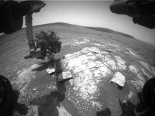 Curiosity is back to work after another hiatus due to a computer reset. These sorts of resets do happen from time to time for operating spacecraft and we're able to enjoy the benefit of two computers to operate the rover by switching to the other one when needed. As you'd expect, the view out of the front windshield hasn't changed much lately and the rover's arm is still poised over the bedrock target "Fife." We'll begin today's plan with an APXS integration on Fife before continuing to examine the nearby bedrock including a pebble called "Schiehallion." ChemCam and Mastcam will also both study some dune and ripple fields nearby called "Motherwell."