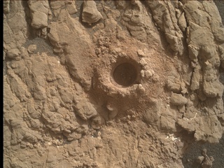 Today we developed a 3 sol plan geared towards wrapping up activities at the "Kilmarie" drill site. We learned early on that the SAM team decided to not proceed with a wet chemistry experiment at this site, which would have required us to drill a third sample. As a result, we finished analyses of the Kilmarie drill hole with MAHLI imaging of the drill hole and tailings and APXS measurements over two regions of the tailings. One APXS spot will be over a redder portion of the drill tailings (see image above), and the other APXS spot will be over the paler portion of the tailings (which also tends to appear as clumps in the above image). Acquiring two APXS measurements over these different areas may tell us whether these two colors represent differences in composition.
