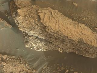 Mastcam also turned its gaze to the scene above our lovely workspace, looking toward future sites of exploration. We planned a five image stereo mosaic of "Annan," our drive target in today's plan, and a 19 image stereo mosaic of "Craigeven Bay." Both Annan and Craigeven Bay exhibit bedding structures that caught the team's eye; stereo imaging will give us a better three-dimensional sense for those structures. MAHLI also got in on the landscape-imaging act, acquiring an image from the stowed position. MAHLI's view will incorporate our path over the last month or so. The last MAHLI stowed image was acquired over 700 sols ago!