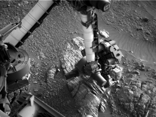 The plan starts with Mastcam multispectral observations to characterize the two different parts of this outcrop, as well as a unique fin of bedrock sticking out at "Joppa Shore." Mastcam will also be used to document some nearby stratigraphy at "North Minch" and an interesting green rock named "Halkirk." Then ChemCam will assess the chemistry of "Blackstones Bank" (part of the darker outcrop) and "Essendy" (a target on the lighter outcrop). We also planned a large Mastcam mosaic to document the "Sandside Harbour" outcrop. The main focus of the plan is to use the DRT, MAHLI, and APXS to characterize the darker outcrop for comparison with the lighter outcrop measurements that were taken previously. "East Shetland," shown in the right side of the above Navcam image, is the top priority today. We'll also acquire MAHLI and APXS on "Essendy," located on the left side of the above image. On the second sol, Navcam will monitor the atmosphere with a suprahorizon movie and dust devil survey. Then we'll drive west to another outcrop and take post-drive imaging to prepare for even more contact science on Monday. Curiosity will wake up early on Sol 2474 for some additional environmental monitoring activities.