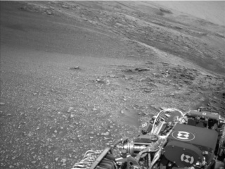 This morning Curiosity found herself parked at the base of the southern escarpment of the Visionarium. She's at a significant tilt of 21 degrees; you can see the slope of the horizon in the attached image. We've been imaging this ridge from several locations over the past few sols, trying to build up our understanding of the geology in this area. In today's plan Curiosity will continue taking high resolution images of the outcrop with Mastcam and ChemCam; three specific areas are being targeted on the outcrop to see details of the various layering: "Antonine Wall," "Tyrebagger Hill," and "Seaton Cliffs."