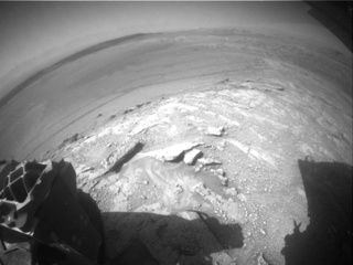 Over the weekend, Curiosity successfully dropped off a portion of the Glen Etive drill sample. But for some reason, the sequence was interrupted, so no images of the portion were acquired. Curiosity's Remote Sensing Mast (RSM), on which ChemCam, both Mastcams, and all four Navcams are mounted, briefly stopped pointing as commanded on sol 2488. The RSM worked well in the tests planned on sol 2489 and downlinked ahead of today's planning, however. So while the engineers continue to diagnose the issue, such as whether it involves recent changes to the way we heat motors connected to the RSM, we used it again cautiously in the sol 2490 plan. This meant avoiding observations that require us to look up from the surface or deck, to avoid any risk of dust piling up on lenses if the RSM became stuck there.