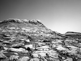 Today, the team continued our exploration of Central Butte with a two-sol “touch-and-go” plan, which means that the rover will have one sol of contact science at this stop before she continues on her drive around the base of the butte. Early on in planning, there was some discussion about the drive route; ultimately, the team decided to head south to get a closer view of some of the exposed layering within the butte. The northern side of Central Butte can be seen in the Navcam image above.