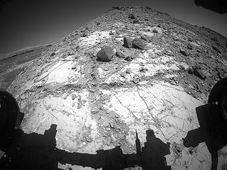 Later this morning, when planning began for Sol 2639, SAM was still marked sick, so the strategically planned bump was replaced with targeted science. Mastcam will extend the stereo mosaic of Western Butte and take a multispectral set of images of the "Ben Eighe" outcrop (upper right of center). After the re-planned bump to fix the wheelie, the AEGIS software will be used to autonomously acquire ChemCam observations of 2 targets in the new workspace, Navcam will search for dust devils, and MARDI will again acquire an image of the ground behind the left front wheel during twilight.