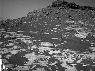 The Sol 2657 drive went well, so we have new bedrock exposures to explore on Sol 2658. The goal for today is to get good chemical and remote sensing data in this location before proceeding uphill toward the south. A "touch-and-go" sol is planned, starting with a short APXS integration on a bedrock slab named "Marchmont." MAHLI will take some images of Marchmont, then the arm will be moved out of the way for ChemCam observations of Marchmont and "Inverness Shire," a darker block sitting on the bedrock surface. Right Mastcam will then take images of the ChemCam targets and "Whitelaw Moss," another slab of bedrock. Mastcam will also acquire a 13x3 stereo mosaic of the west side of Tower Butte to examine its sedimentary structures. After a 23-meter drive and the usual post-drive activities, ChemCam will use AEGIS to automatically select a bedrock target in the rover's new location. Finally, MARDI will take an image during twilight. The tactical planning team did a great job, which made for an easy day for me as SOWG Chair.