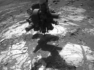 We were greeted this morning with images of our newest (and 24th!) drill hole on the surface of Mars! The Front Hazcam image above shows the drill in action at target “Hutton.” As a fitting celebration, a box of donut holes was passed around the ops rooms at JPL.
