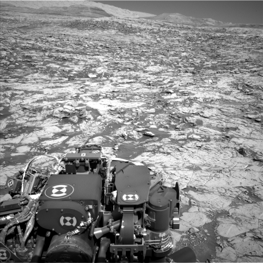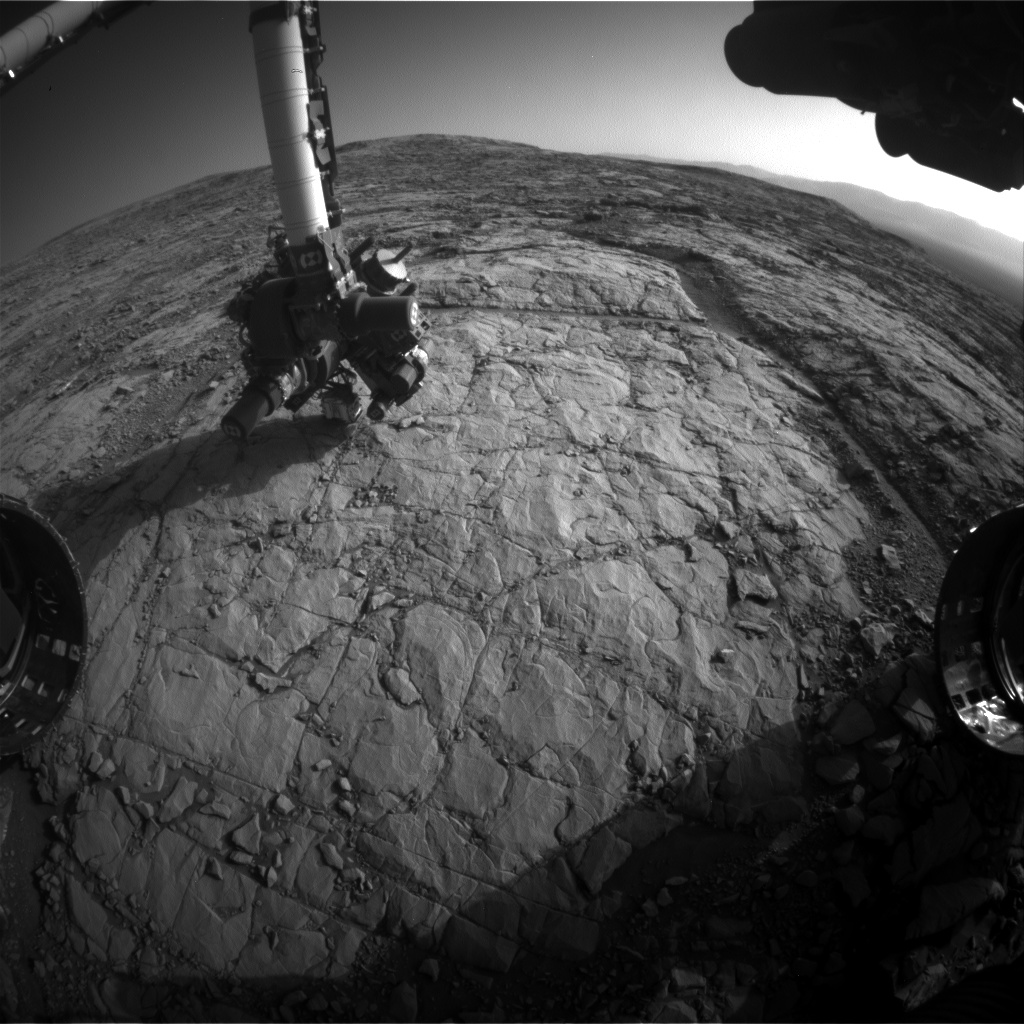 Curiosity spent her last sol in the Bar Harbor quadrangle "going right out straight" (working very hard). With ChemCam, she zapped "Hawk Mountain," a rock with "savage" (great) layering, and a "whole 'notha" (another) target, "Bonney Woods," moving from a white vein into the surrounding bedrock. Mastcam acquired a small stereo mosaic over an area where the bedding geometry appeared particularly well-exposed. This area was dubbed "Erickson Fields," though not for MSL's "wicked good" (great) project manager, Jim Erickson. The Kuruman quadrangle is just out Curiosity's "dooryard" (front door), so with today's 32 m drive, we CAN get there from here!