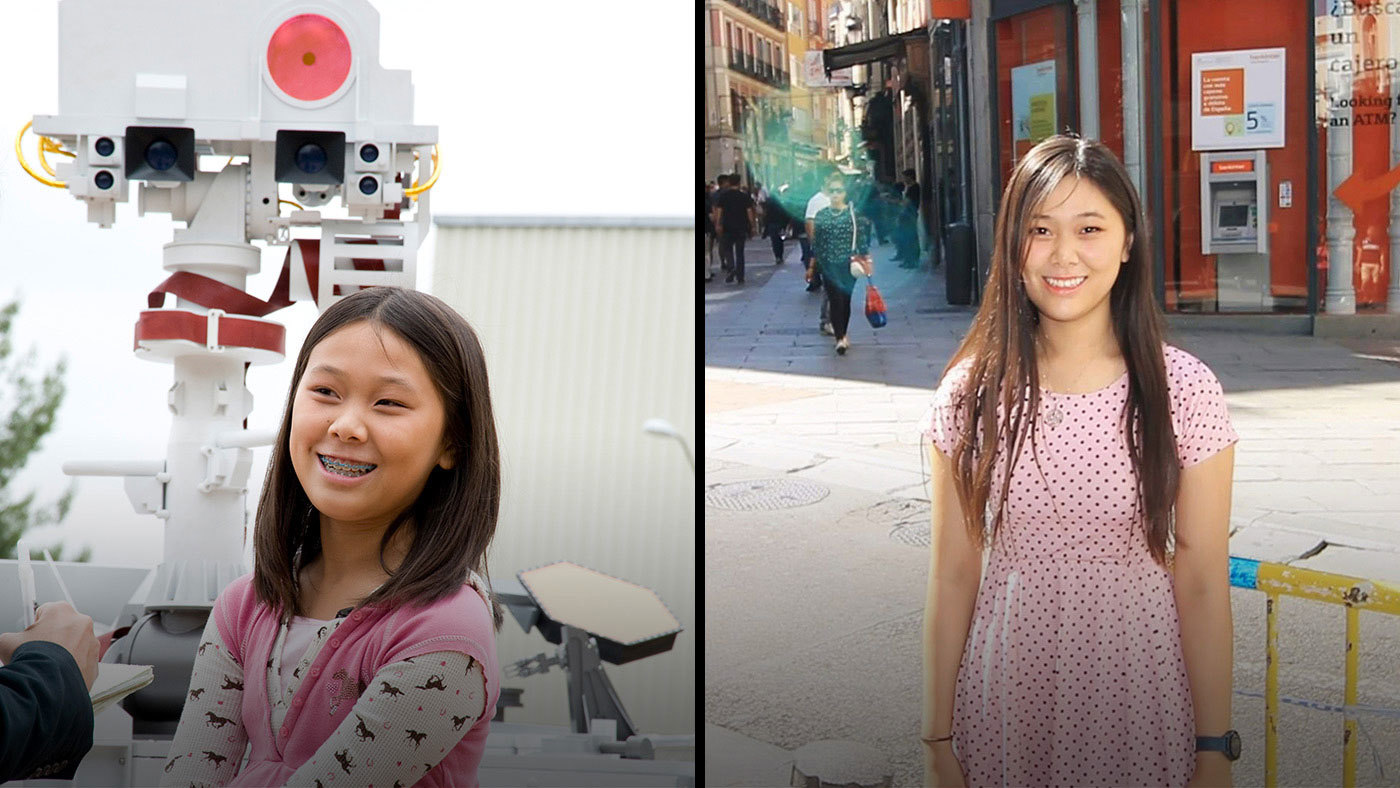 Clara Ma, Then and Now: Clara Ma, winner of the contest to name NASA's Curiosity rover, in 2009 with an engineering model of the rover (left) and as a graduate student in 2019 (right) Credit Left: NASA/JPL-Caltech (left); right: Clara Ma. Download images ›