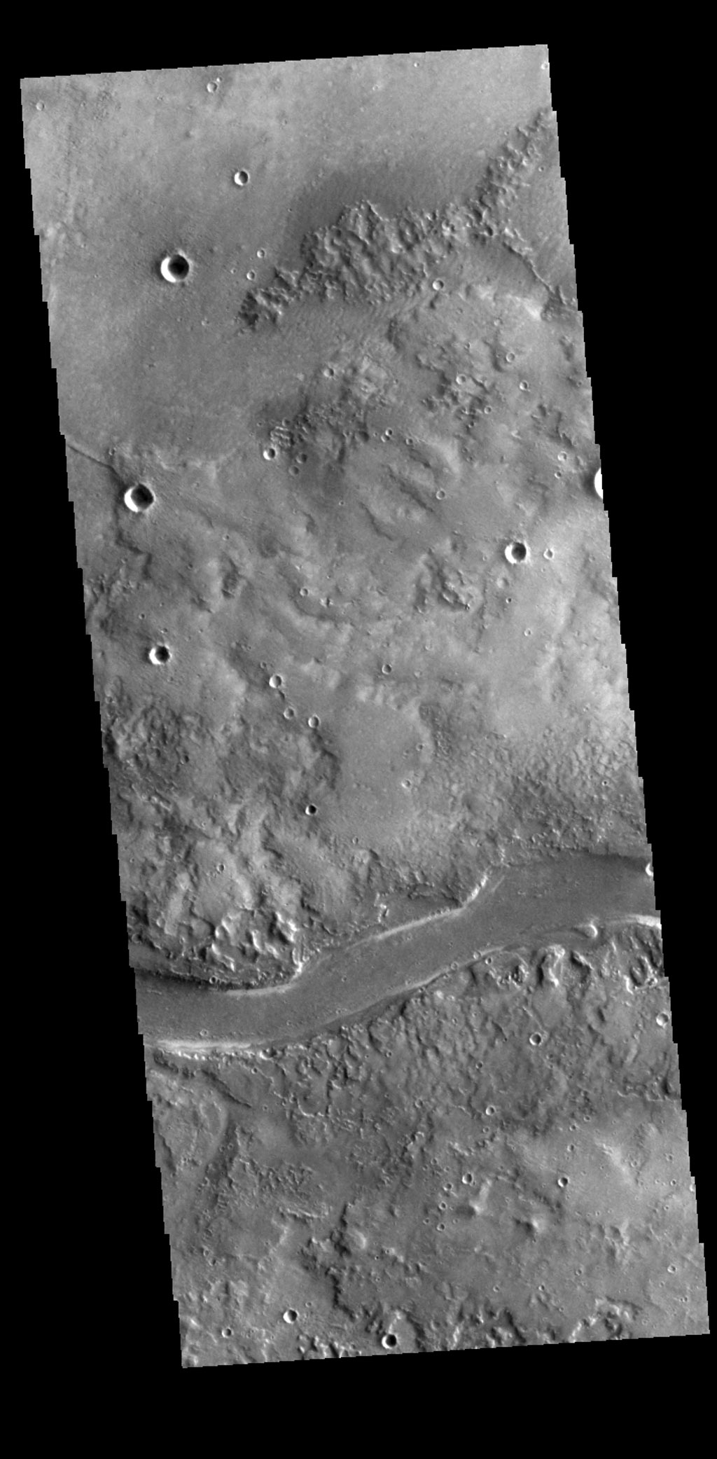 This VIS image shows a section of Granicus Valles. Granicus Valles is one of several channel systems the originate near Elysium Mons.