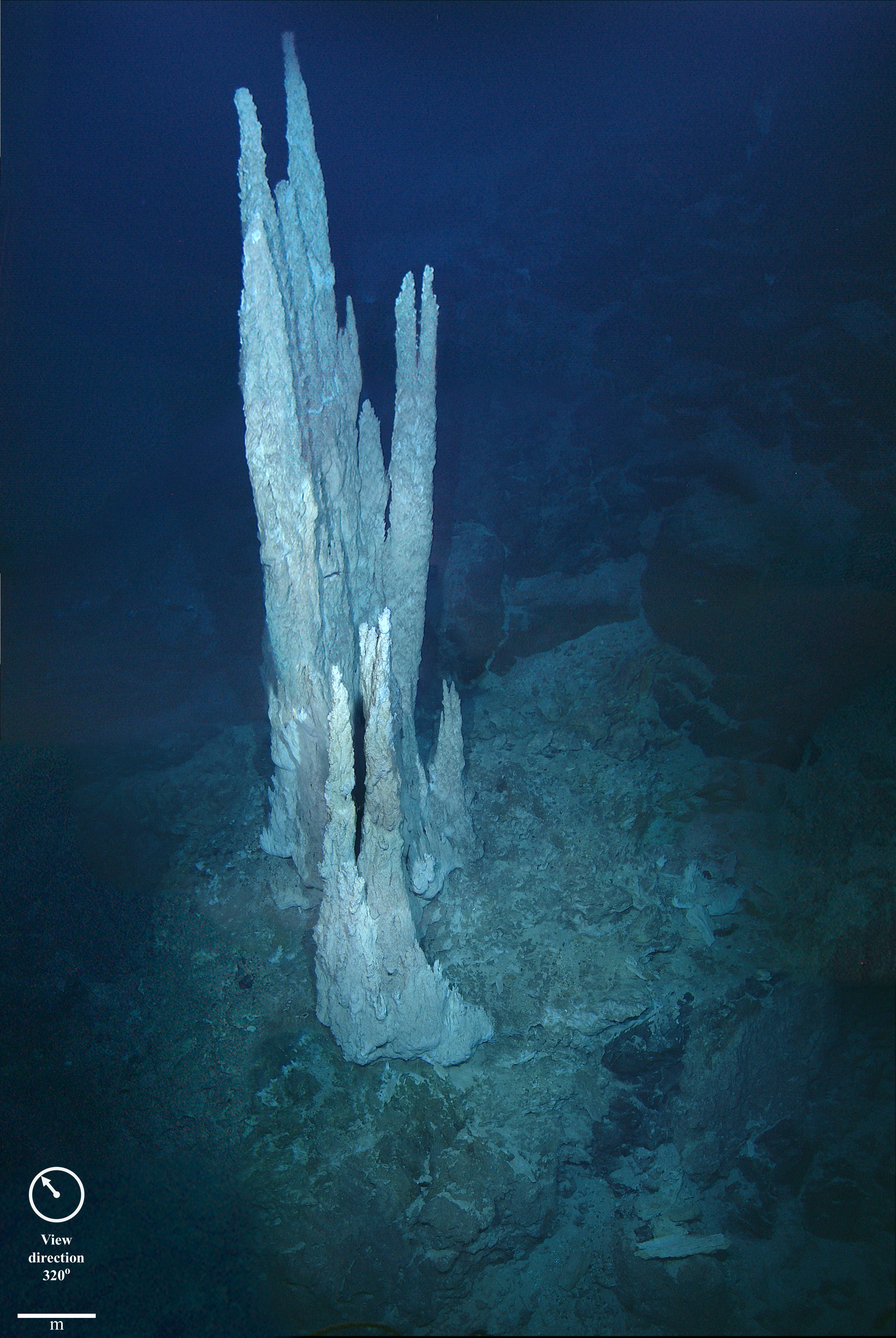 This image from the floor of the Atlantic Ocean shows a collection of limestone towers known as the "Lost City." Alkaline hydrothermal vents of this type are suggested to be the birthplace of the first living organisms on the ancient Earth. Scientists are interested in understanding early life on Earth because if we ever hope to find life on other worlds - especially icy worlds with subsurface oceans such as Jupiter's moon Europa and Saturn's Enceladus - we need to know what chemical signatures to look for.